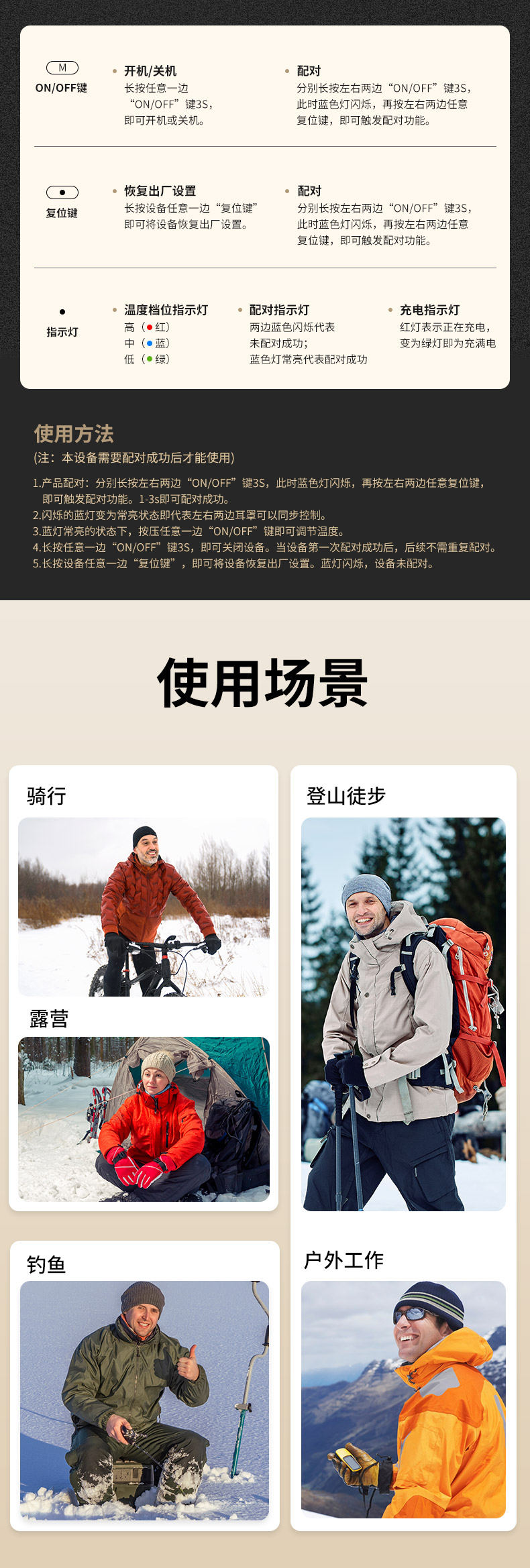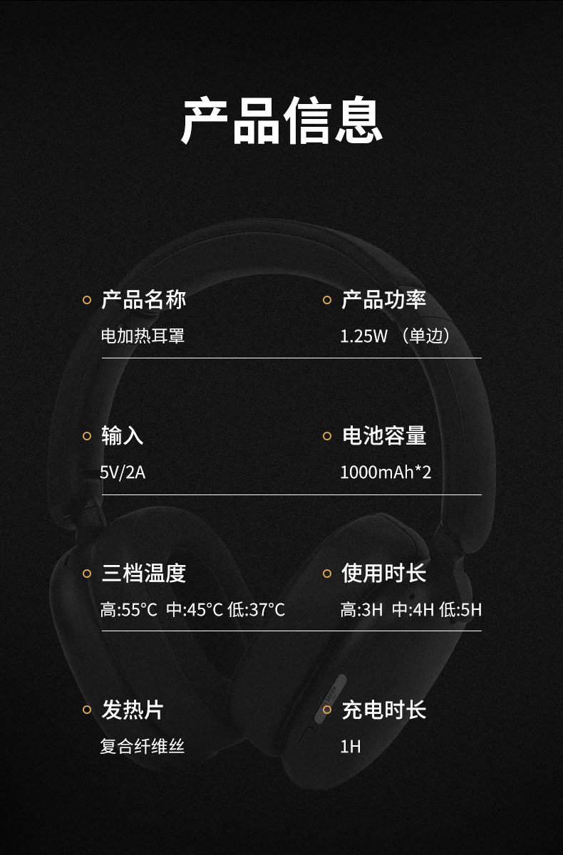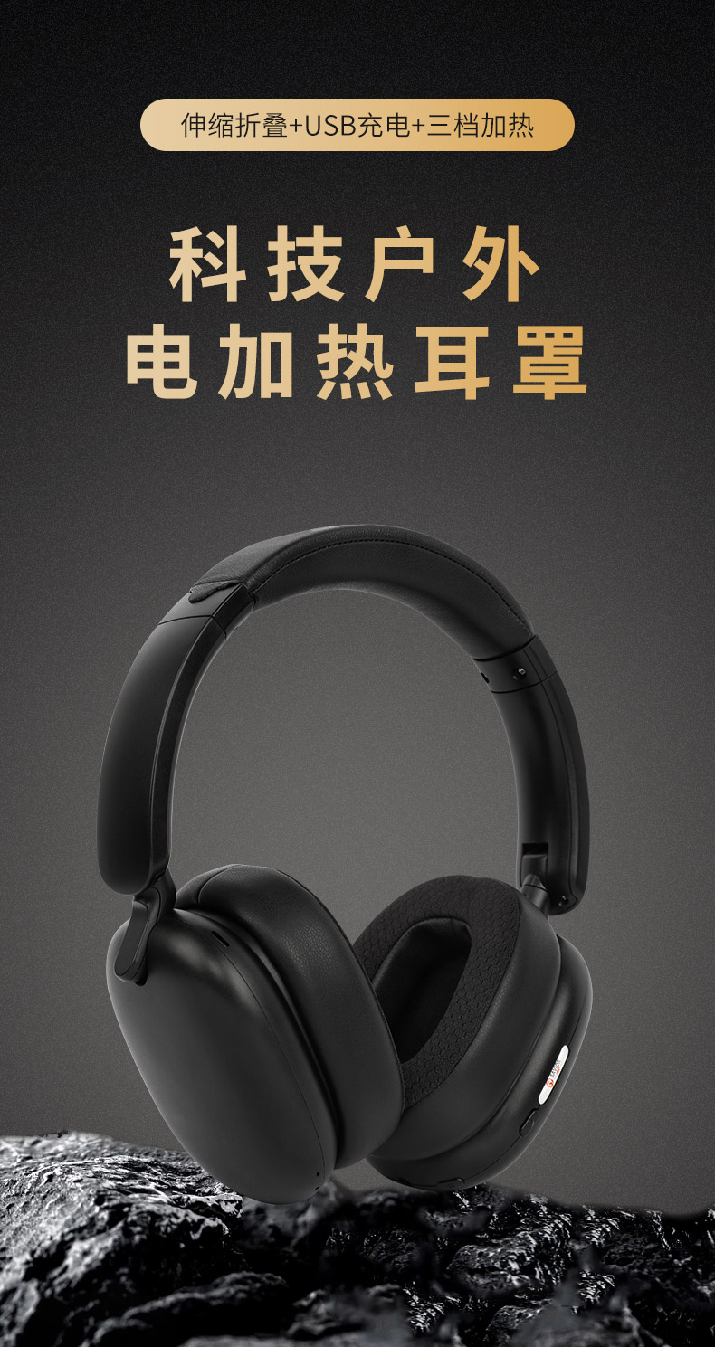 心之礼科技户外电加热耳罩USB充电伸缩折叠三档加热保暖